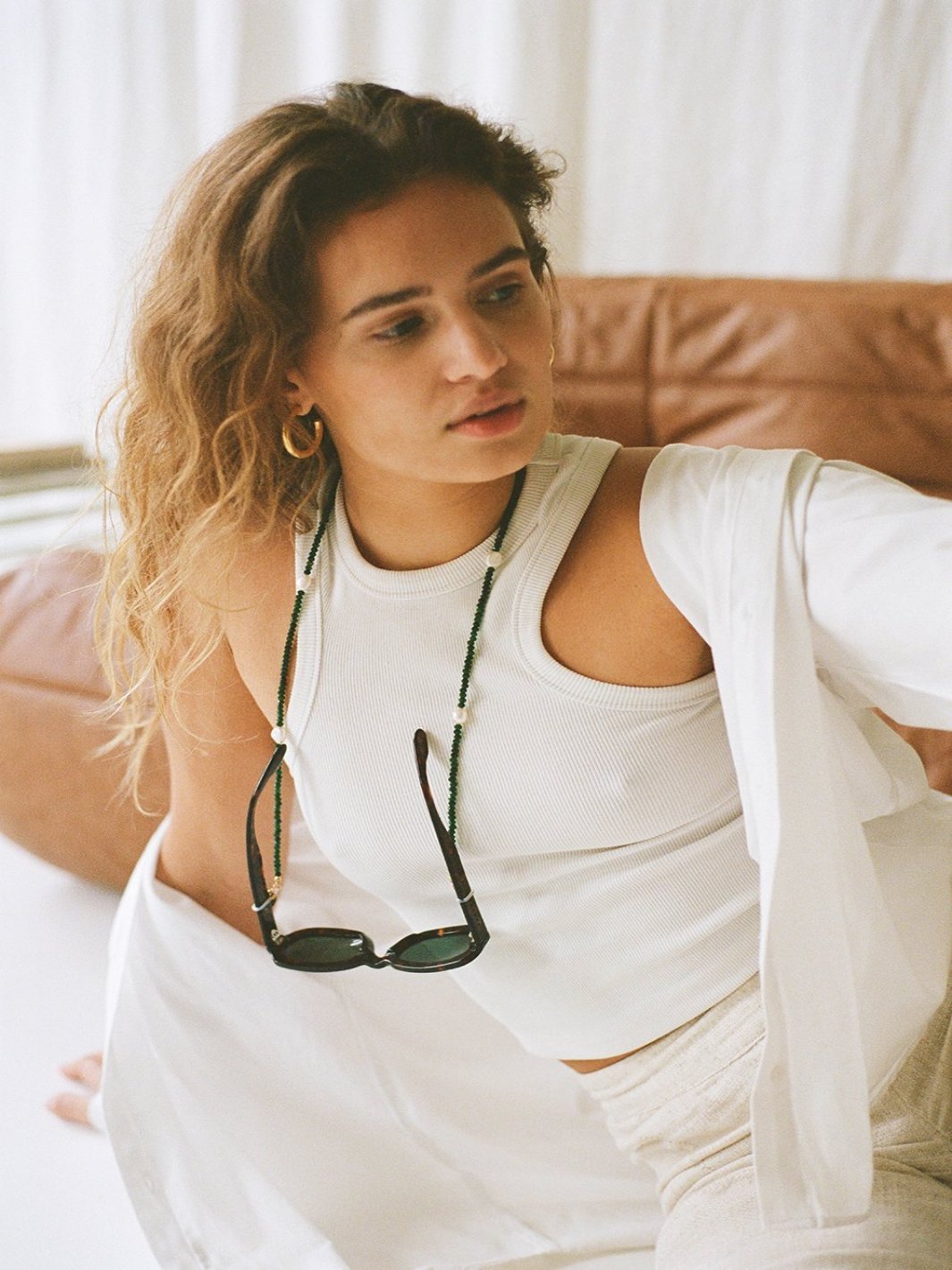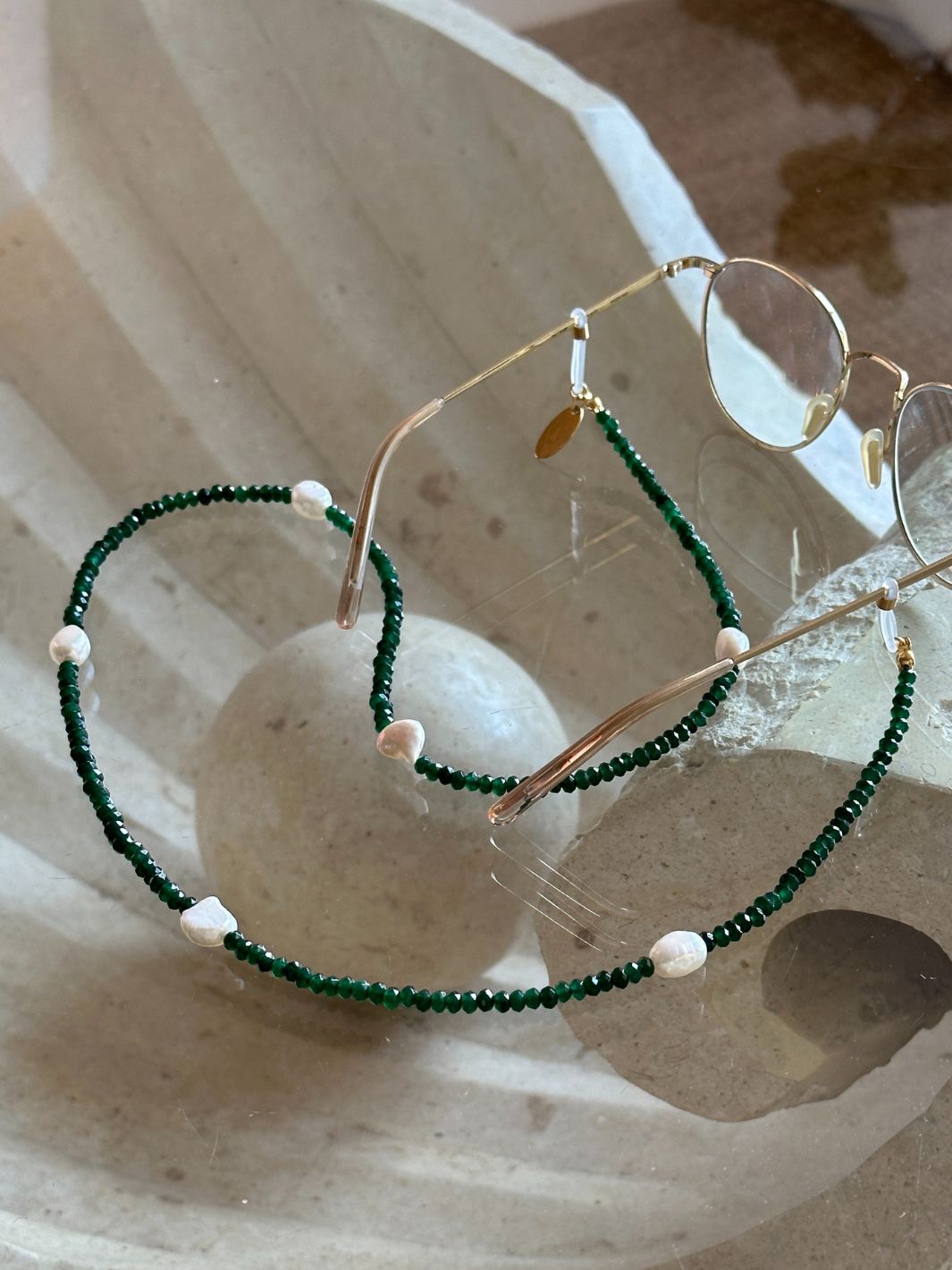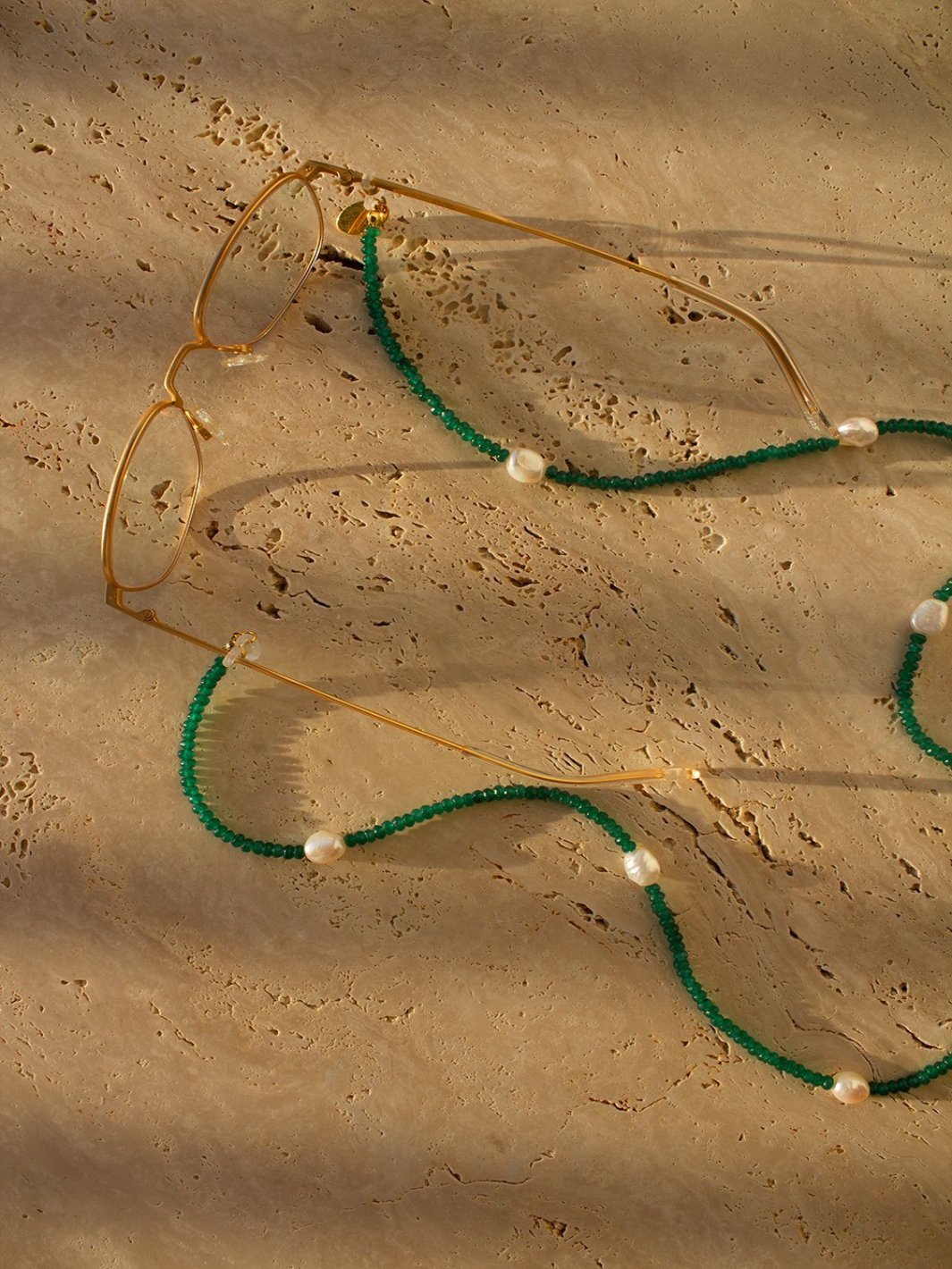Dit groene brillenkoordje is een absolute opvaller. Ze is gemaakt van prachtige groene kralen en grote natuurlijke parels. Een echt beauty om zowel aan je gewone bril als aan je zonnebril te dragen! Deze sunnycord is een timeless design.