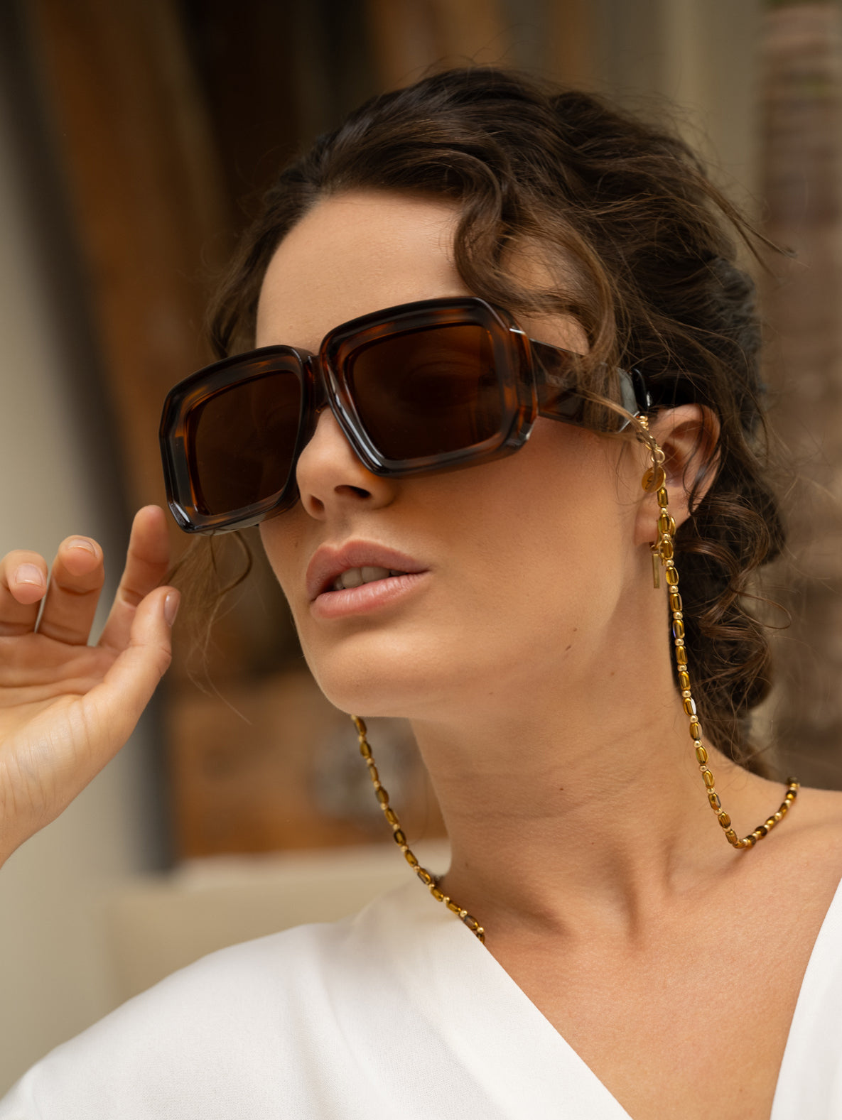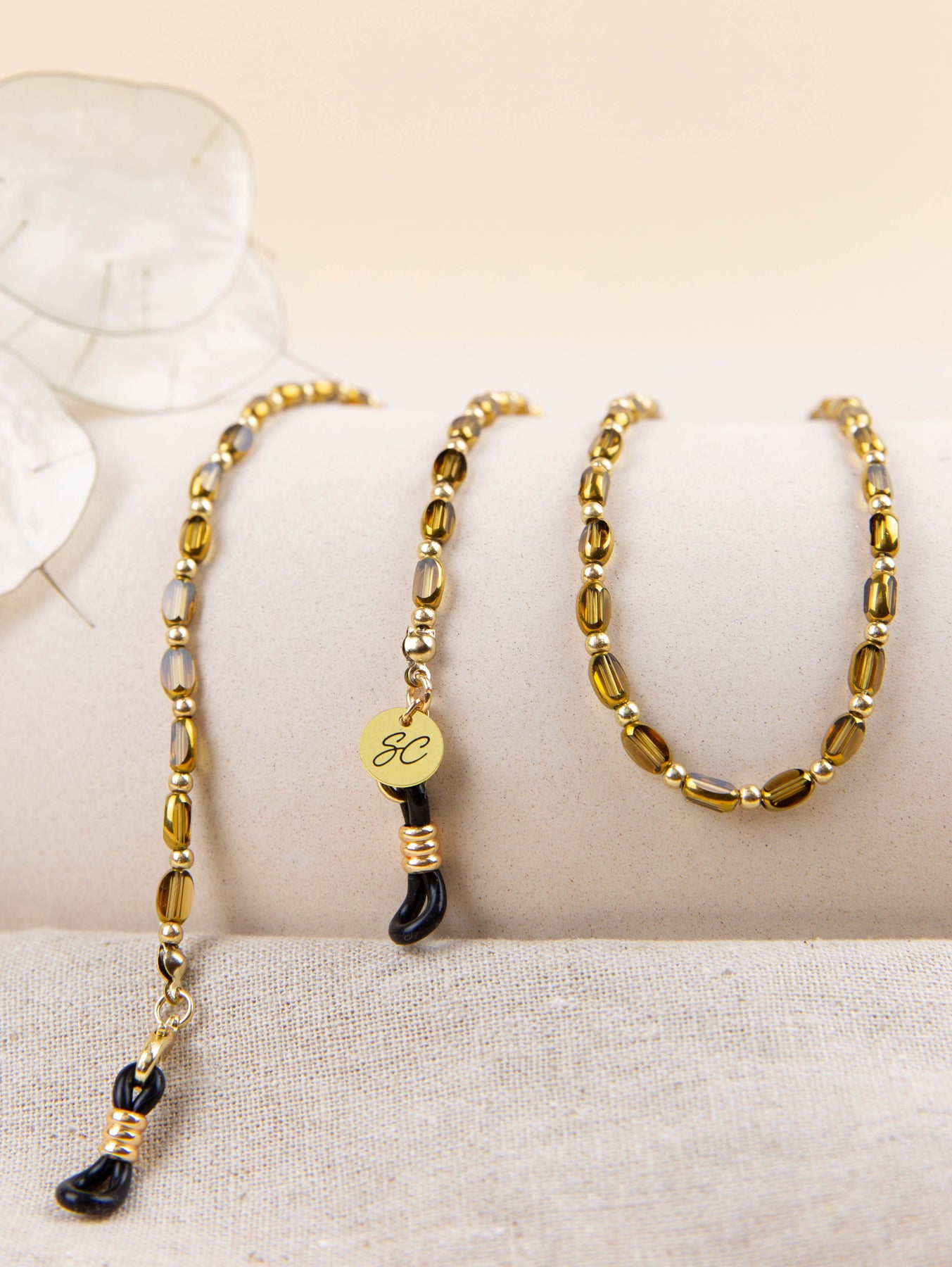 Deze brillenkoord is persoonlijk onze favoriet! Of het nu voor zakelijk chic, casual of extravagante festiviteiten is, de Sam zonnebrilkoord is de perfecte toevoeging voor elke gelegenheid. Mix en match het, het is de ultieme overgang van casual naar chic, perfect om nu en altijd te dragen. Kies de bruine, groene of assige kleur en je bent klaar om te gaan! P.S. Dit brillenkoord is ook perfect om te dragen als armband of ketting.