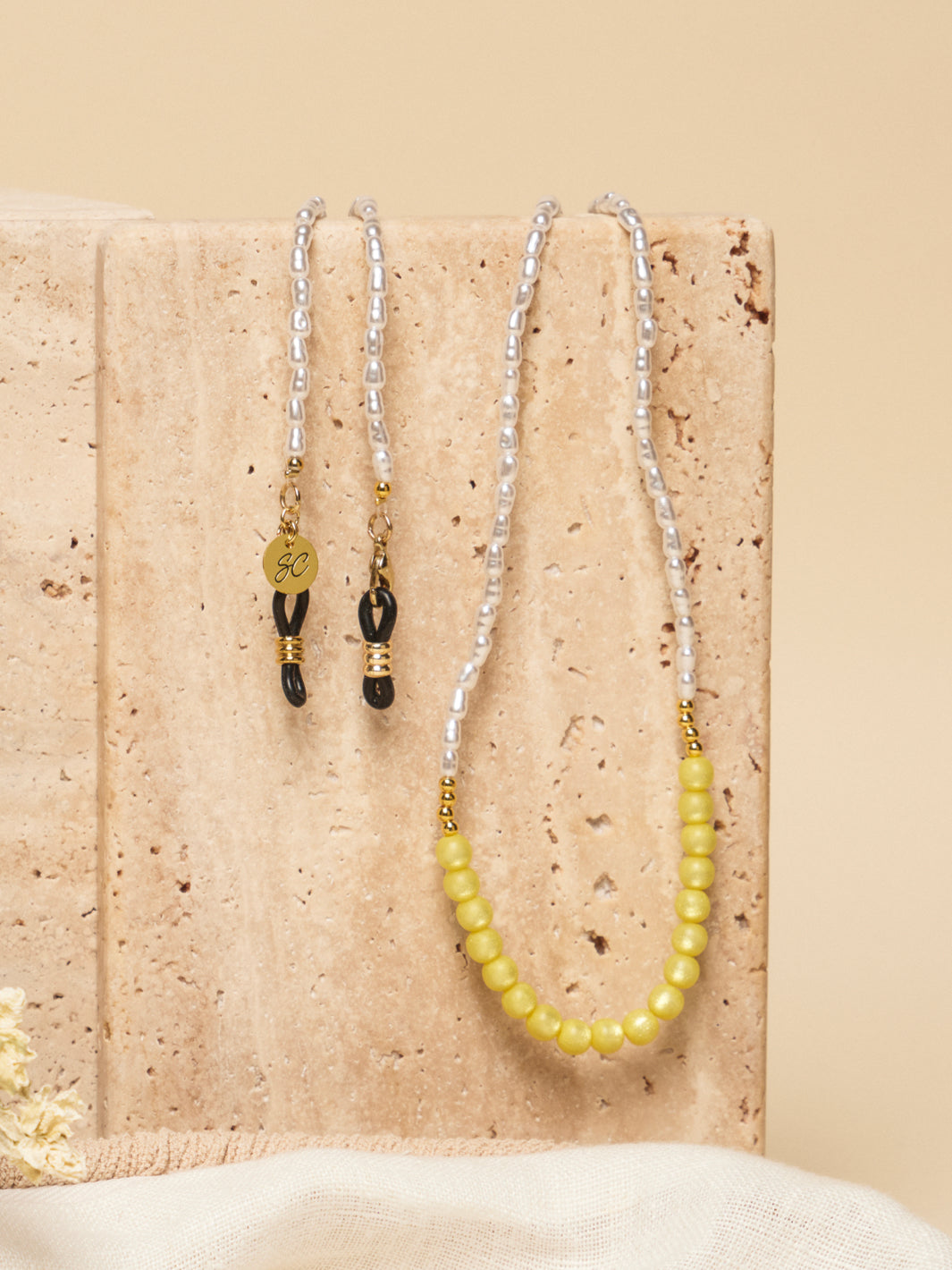Zeker! Onze brillenkoordjes zijn ontworpen als multifunctionele accessoires. Je kunt ze gemakkelijk om je nek dragen als ketting of dubbelvouwen als armband.