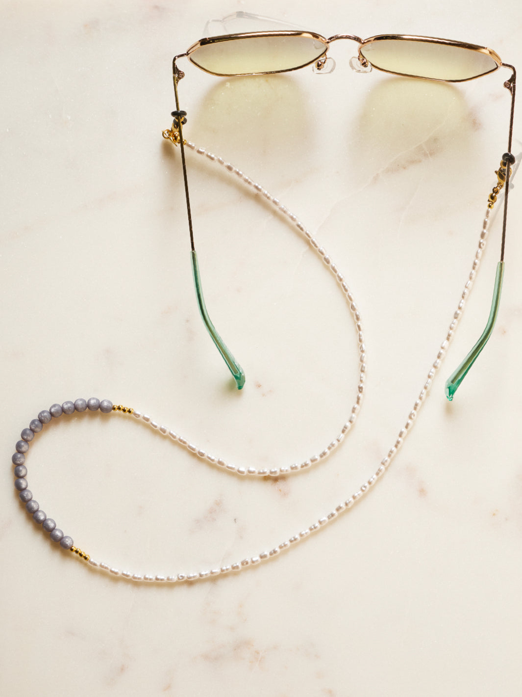 Laat je betoveren door de schoonheid van de Sky zonnebril koord. De Sky bestaat uit een samengestelde collectie van kleine imitatie parels en super polaris kralen. Deze zonnebrilkoord is gemaakt van hoge kwaliteit en met de grootste zorg en precisie zijn geselecteerd voor hun uiterlijk en glans. We hebben deze variant in drie kleuren gemaakt: blushing perzik, jeans blauw of limoen geel. Welke wordt jouw favoriet om te shoppen?