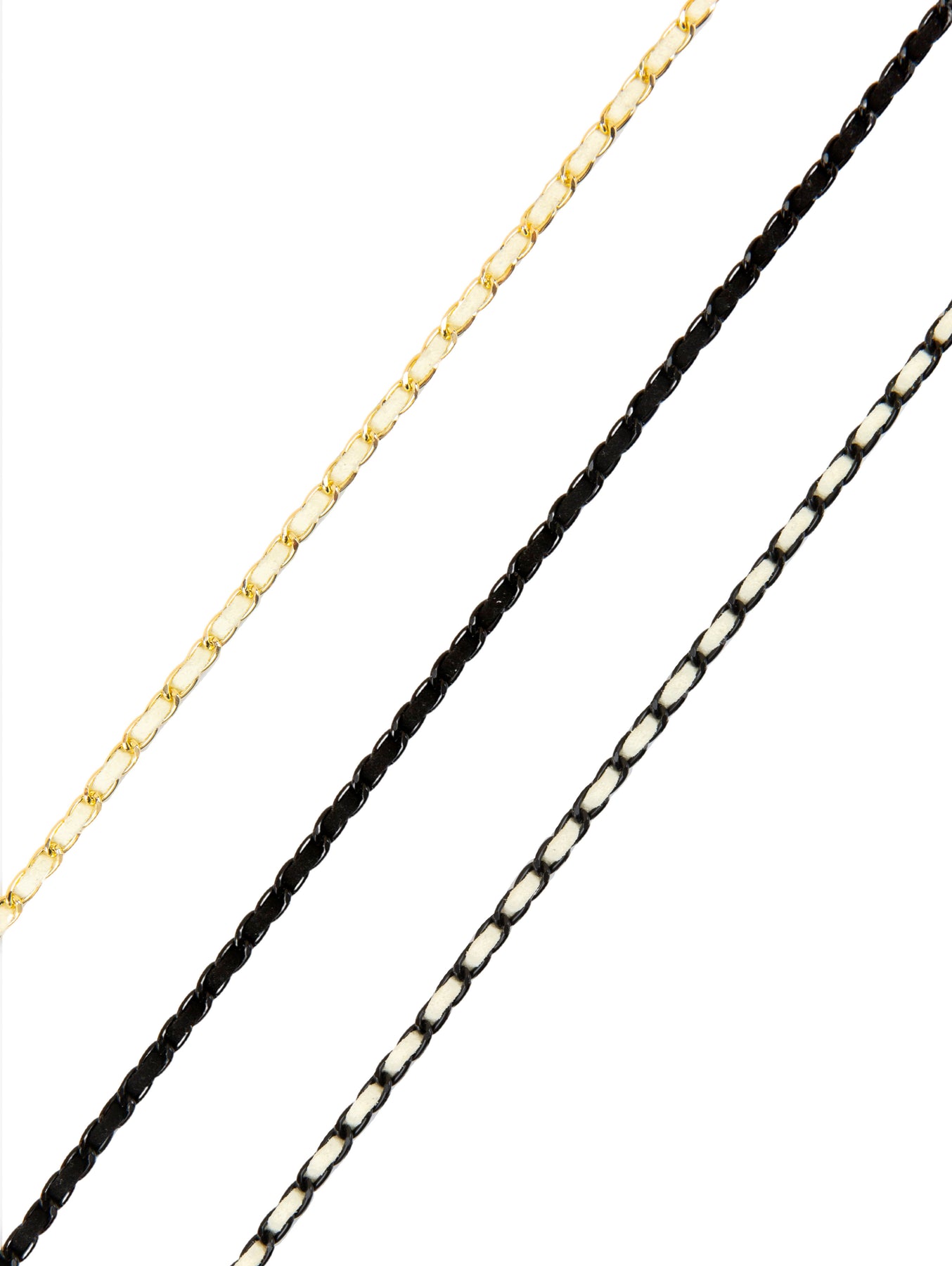 Gemaakt van hoogwaardig roestvrij staal met goud- of zilverlaag, onze brillenkoorden zijn gecoat voor extra bescherming om een langdurige kleur en glans te garanderen.