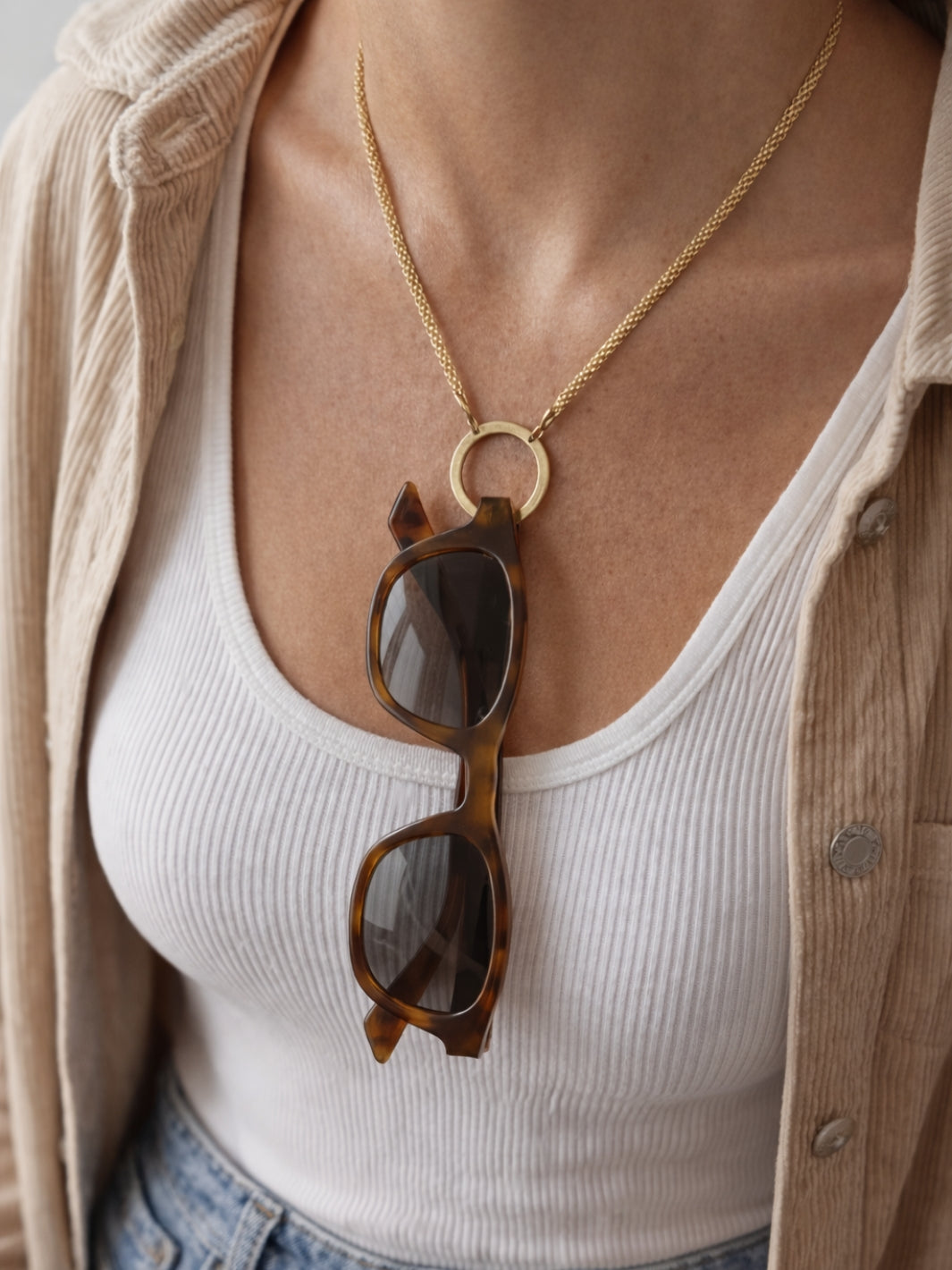 De Lux brillenkoord ketting is een verfijnde essential voor elke dag. Deze zonnebril houder is ontworpen als ketting binnen onze Ring Edit collectie. Een 18K vergulde stainless steel ketting zonder extra details. Gewoon een gladde, gepolijste afwerking die het licht subtiel vangt. Minimalistisch, maar met een premium uitstraling. Ontworpen om elke dag te dragen. Verkrijgbaar in zowel een lange als korte variant.