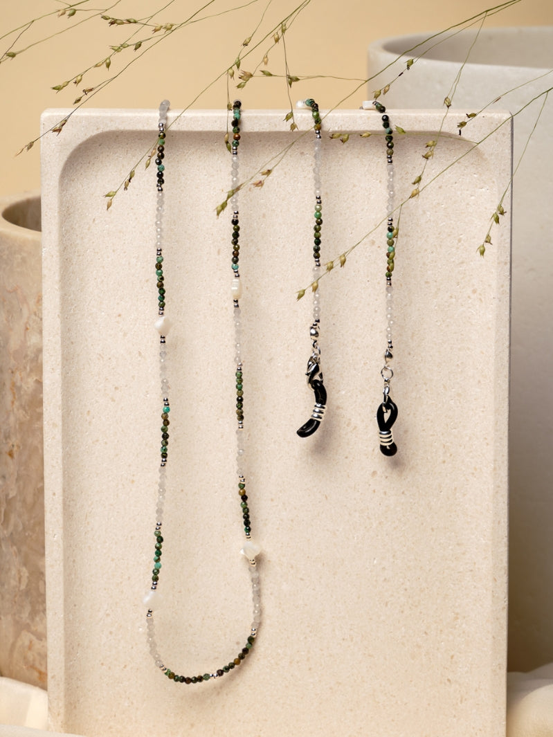 Zeker! Onze brillenkoordjes zijn ontworpen als multifunctionele accessoires. Je kunt ze gemakkelijk om je nek dragen als ketting of dubbelvouwen als armband.