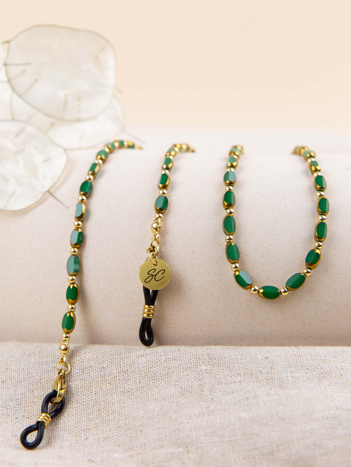 Deze brillenkoord is persoonlijk onze favoriet! Of het nu voor zakelijk chic, casual of extravagante festiviteiten is, de Sam zonnebrilkoord is de perfecte toevoeging voor elke gelegenheid. Mix en match het, het is de ultieme overgang van casual naar chic, perfect om nu en altijd te dragen. Kies de groene, bruine of assige kleur en je bent klaar om te gaan! P.S. Dit brillenkoord is ook perfect om te dragen als armband of ketting.